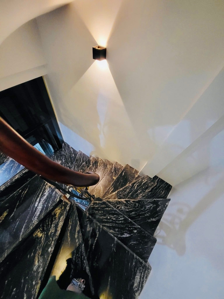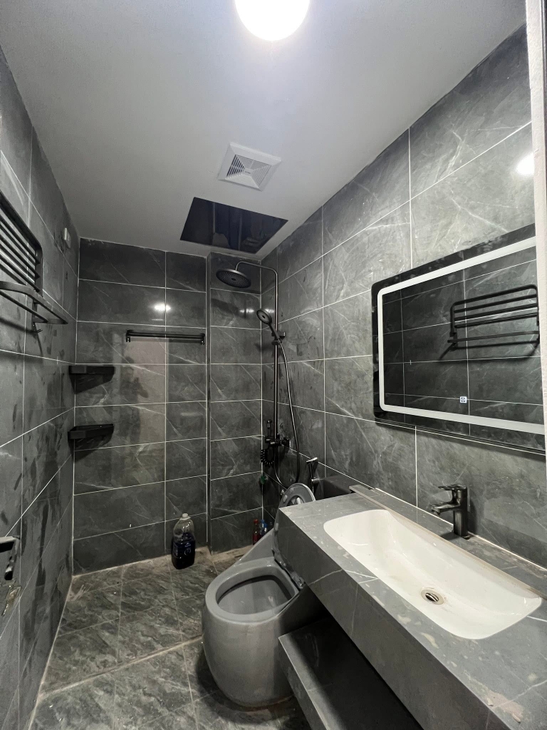 Nhà mới xây được gần 5 năm, thiết kế hiện đại, chắc chắn. Thang máy nhập khẩu, nội thất và đồ gỗ sang trọng. Giếng trời thông thoáng giúp các phòng luôn tràn ngập ánh sáng tự nhiên.